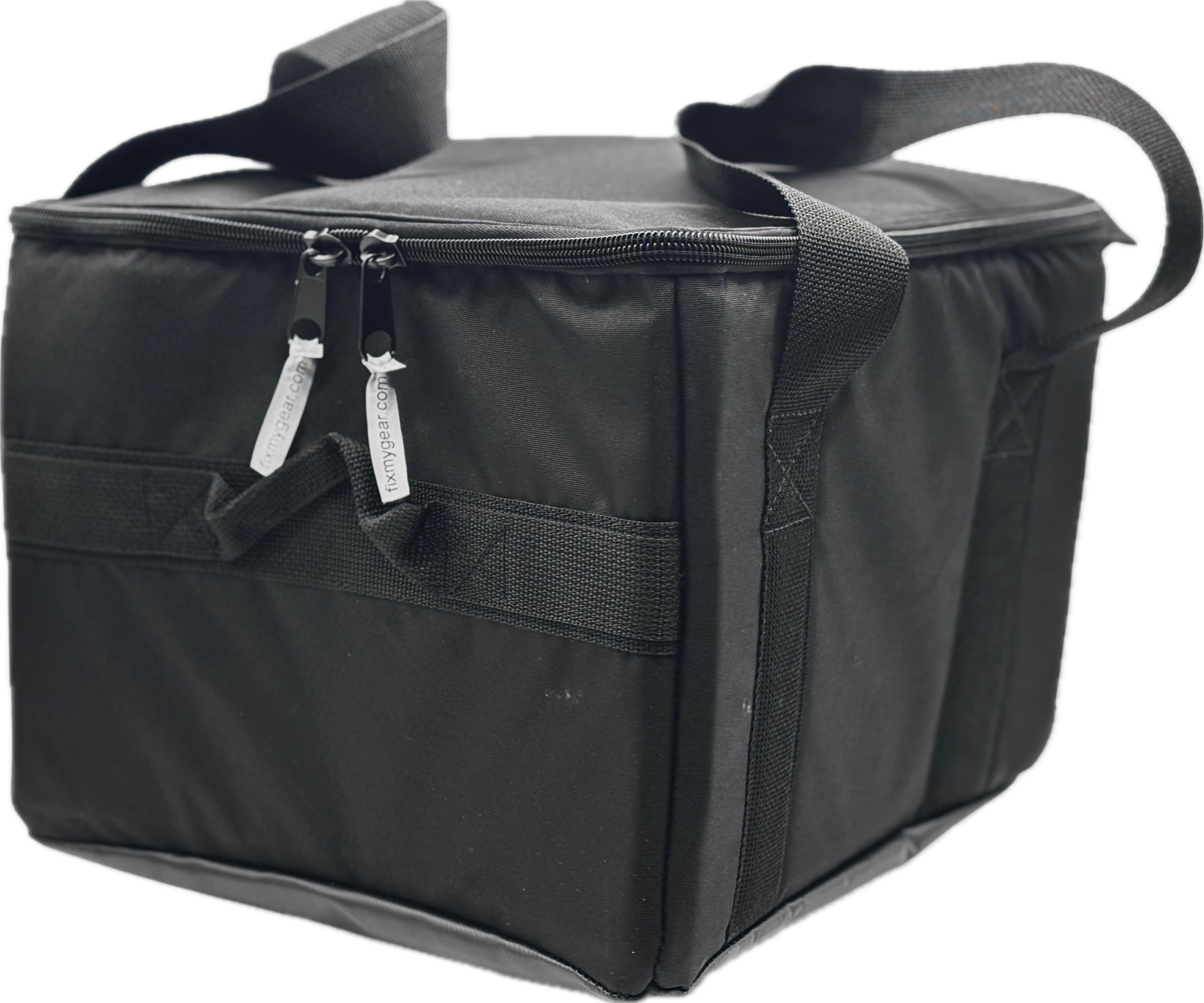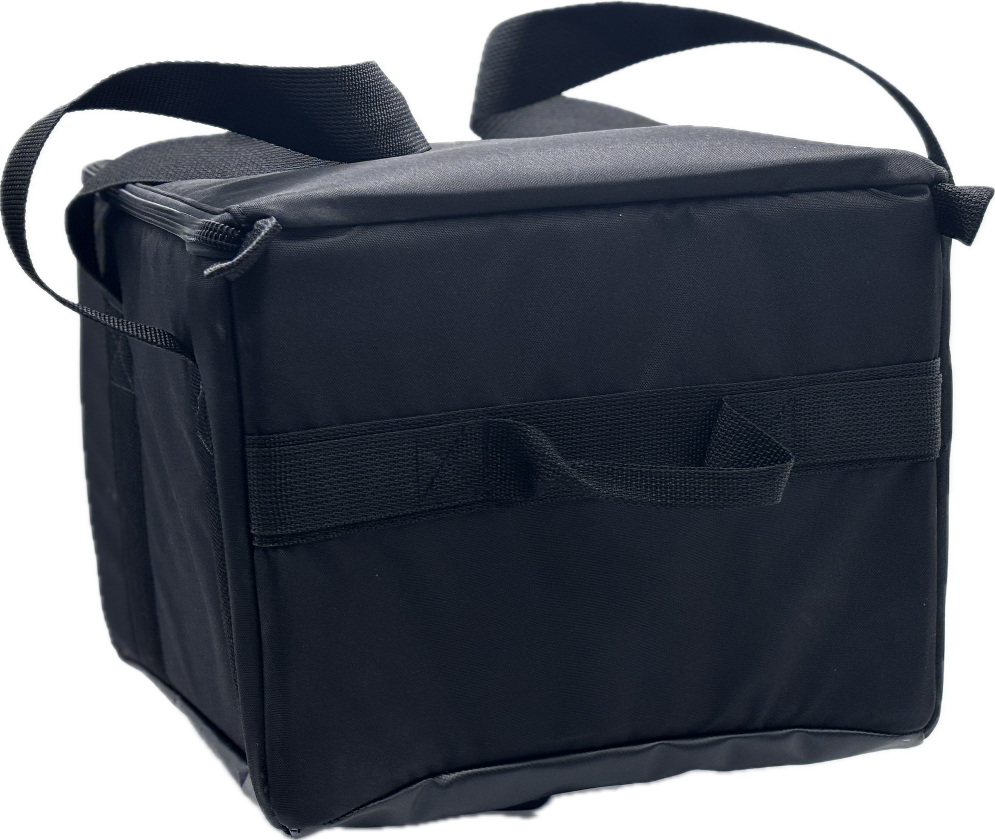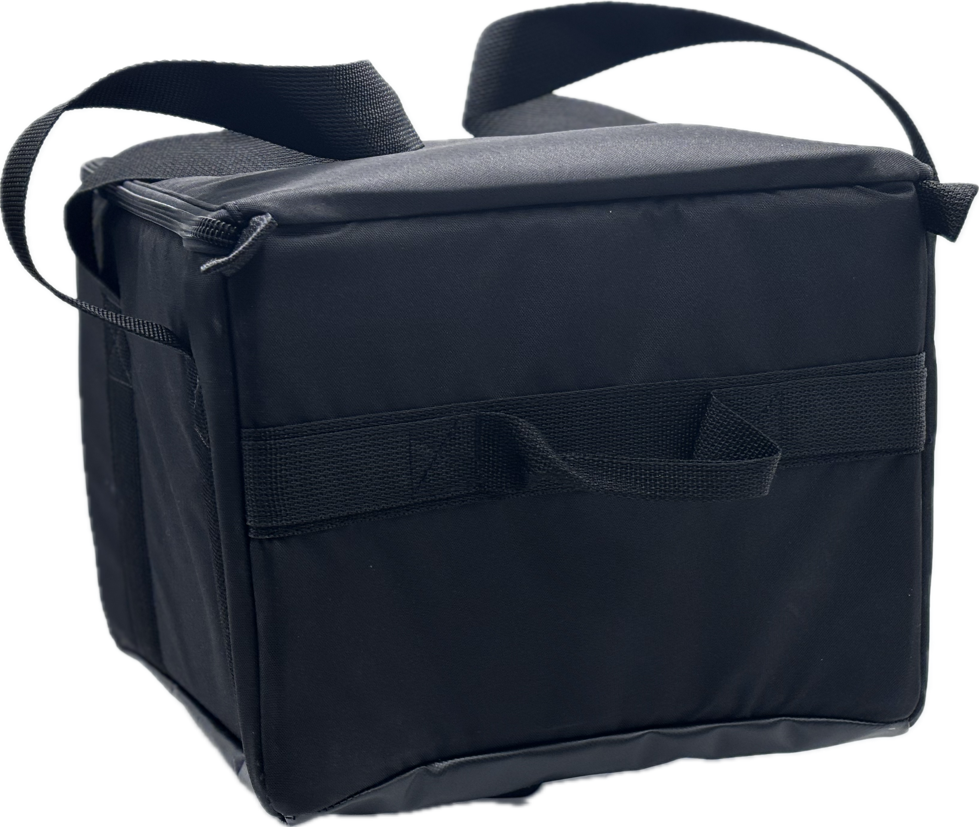 Heavy-duty custom team water bottle case designed to fit 16 or 30 bottles. Built with padded reinforced walls, a supported bottom and durable cary straps for travel, locker rooms and team equipment managers.