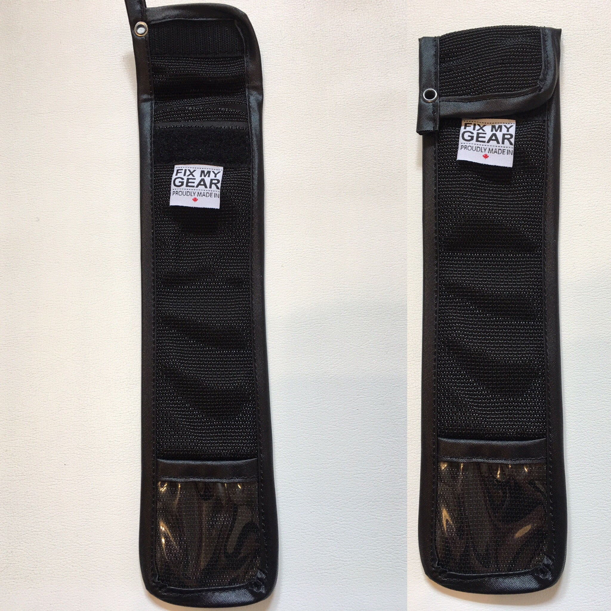 Protect your extra set of steels with a poly webbing pouch, and velcro shut to keep together when on the road. Also available in custom colours upon request. Team orders sold in sets of 10. Handcrafted In Canada