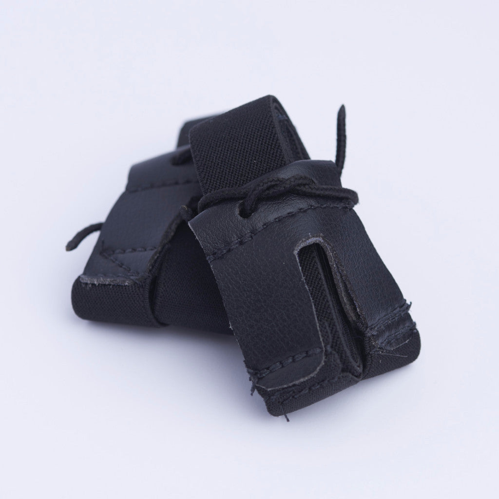 Made of heavy duty elastic and Velcro . Fits all pads. Comes in Jr and Sr sizes